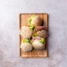 Mini buns met beleg, maak uw keuze tussen standaard, luxe of mix beleg en met of zonder groentjes.