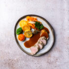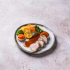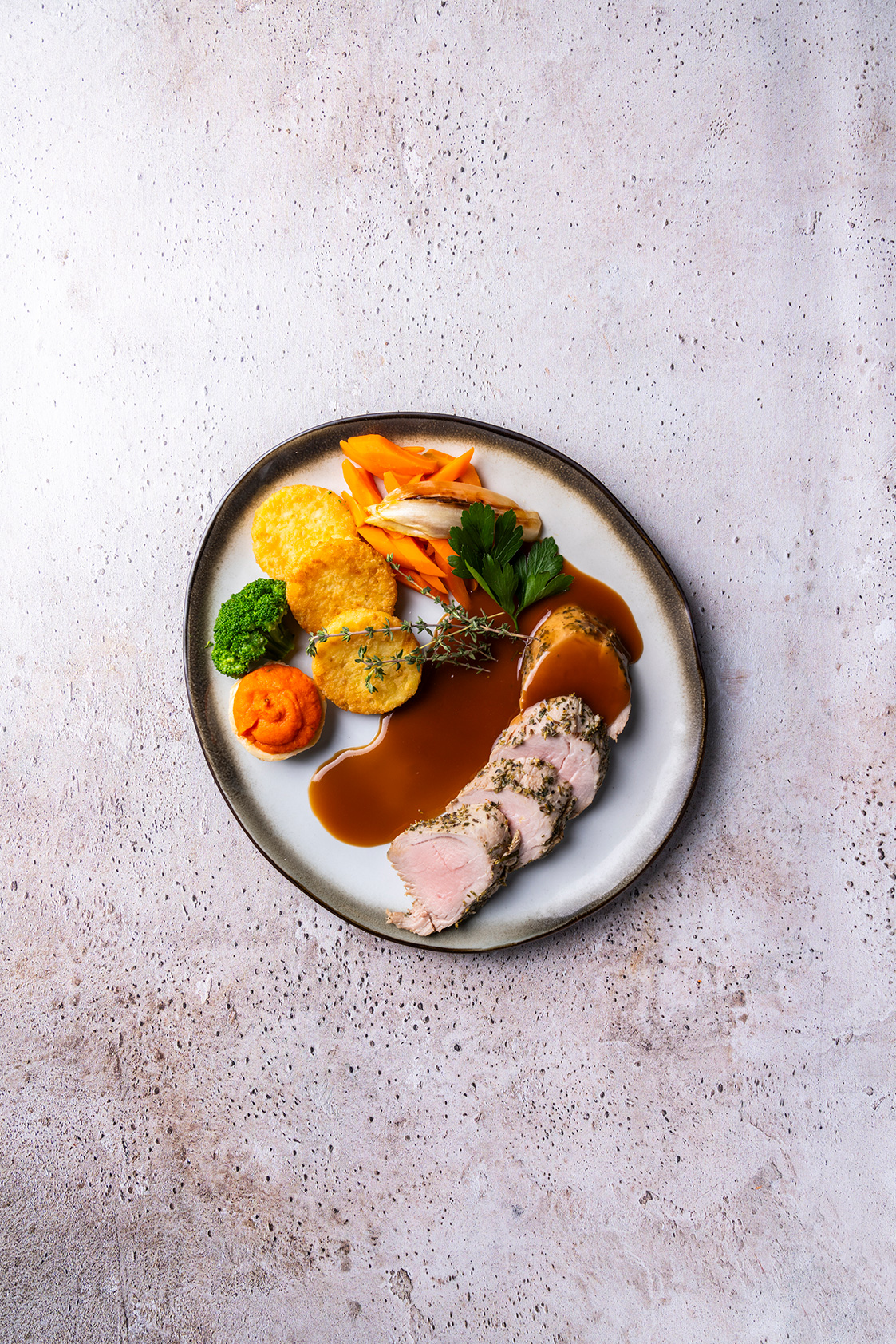 Varkenshaasje met rozemarijn, portosaus en groenten